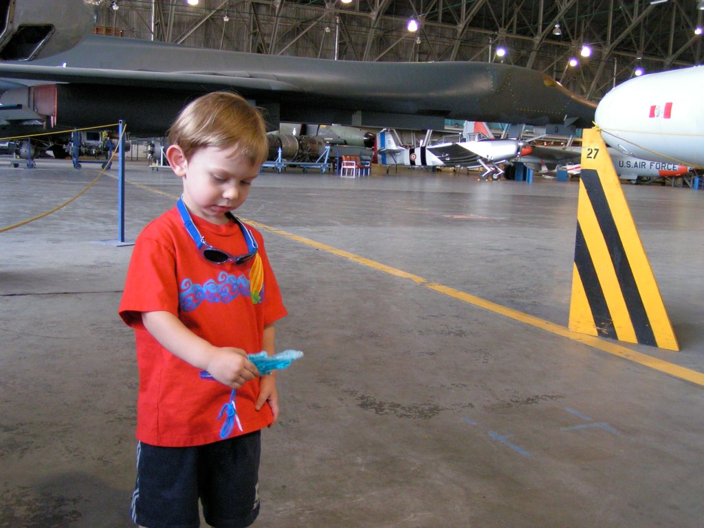Time slows as I take in the muffled sounds of the vast airplane hangar we are in. My eyes trace the shapes of the various airplanes, one from the cold war, another bigger from WW2. I am drawn to the sound of my son’s sneakered feet slapping the concrete floor as he runs. He makes airplane zooming noises swooping a small P51-Mustang through the air.